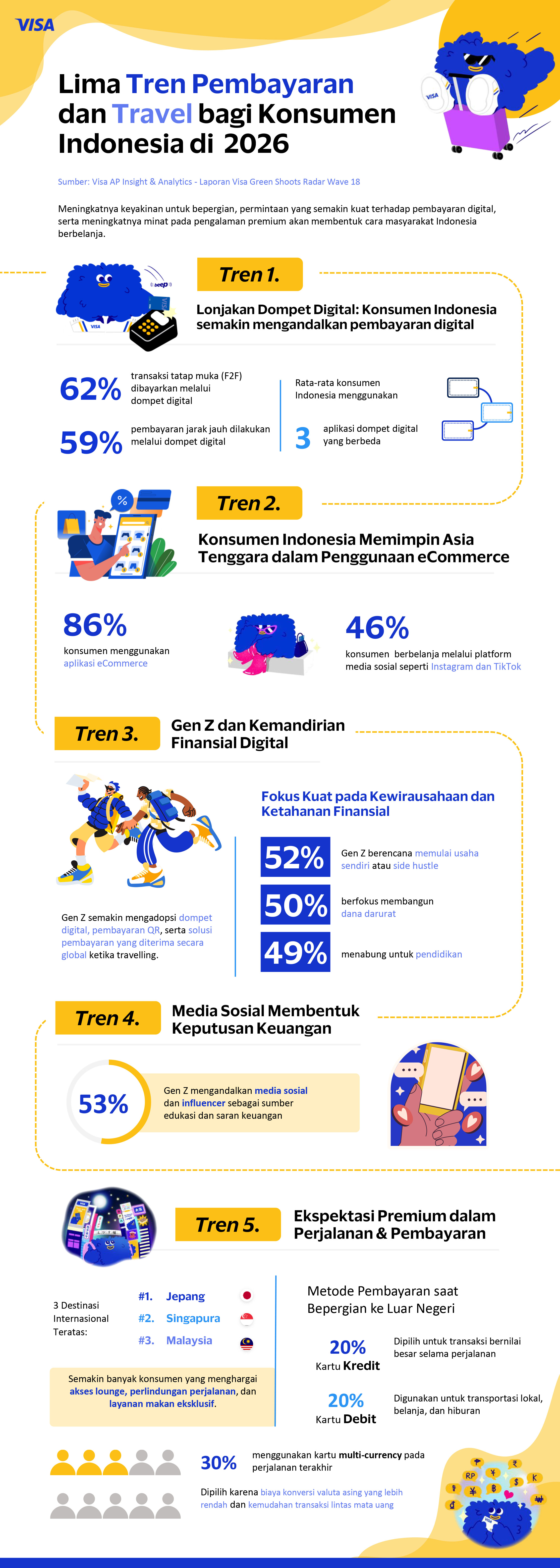 Laporan terkini Visa menyoroti lima tren utama pembayaran dan travel untuk Indonesia di tahun 2026